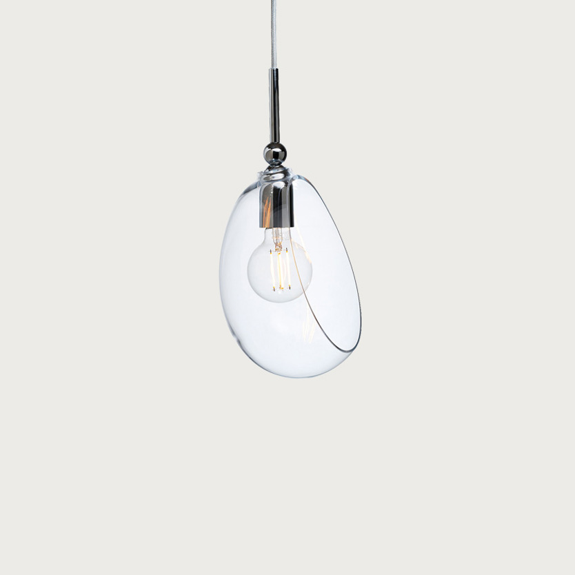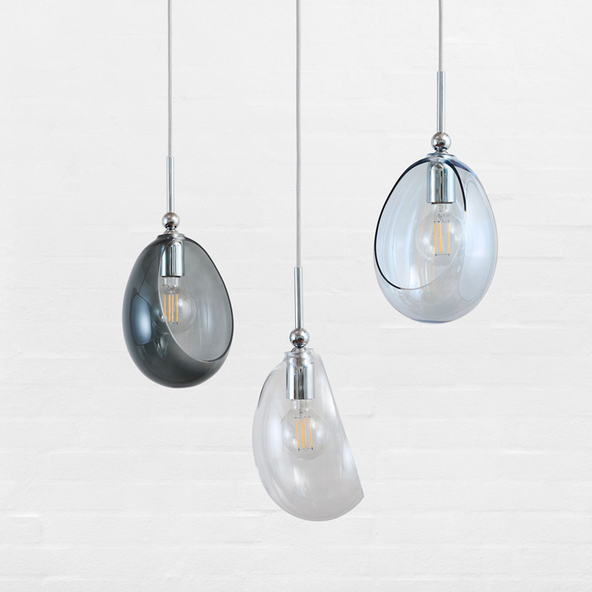 A blend of mouth-blown glass and metal finishes in a variety of colours.