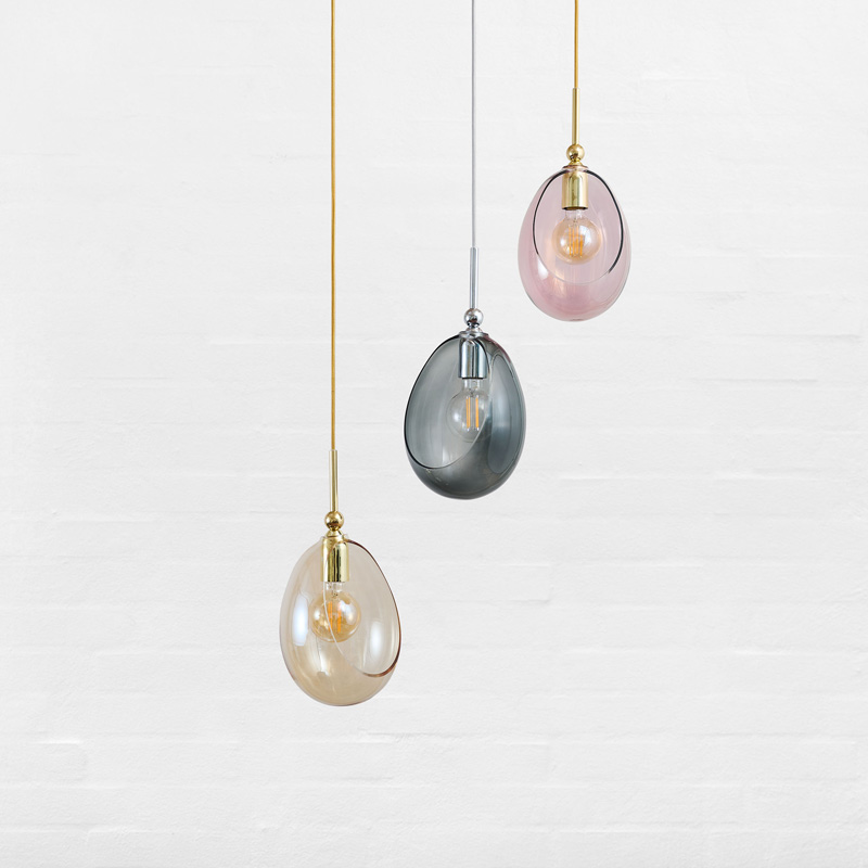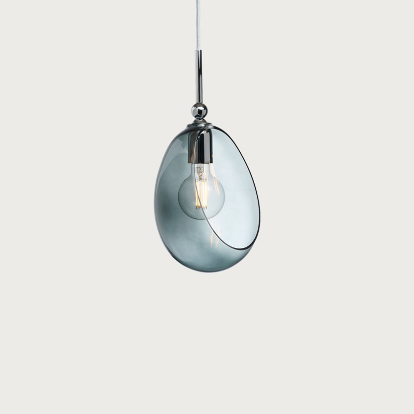 A blend of mouth-blown glass and metal finishes in a variety of colours.