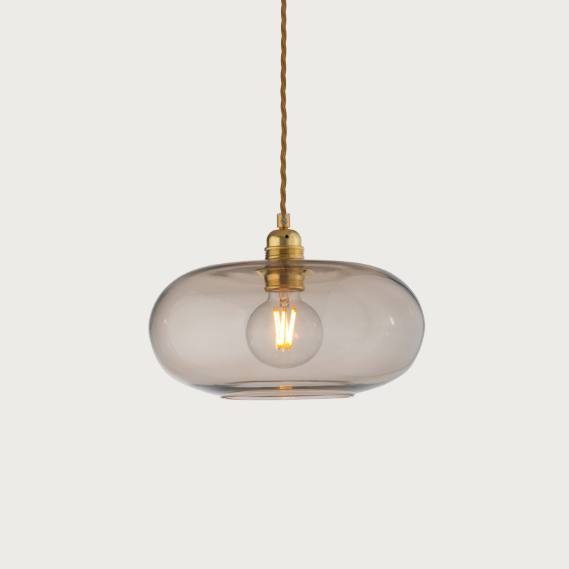 Brand: Ebb & Flow With its wide shape and shallow height, Horizon invites you to look far and gaze into the unknown. A perfect pendant light for applications where you need to fill spaces without obstructing views. Available in a variety of glass colours and sizes, with either Gold or Silver cable and metalware. Rated IP20 suitable for indoor use. Designed by Susanne Nielsen in Denmark and hand-made in Europe. This product features mouth-blown glass and the exact size, colour and texture of each piece may vary. For trade enquiries, please contact us below. RELATED ITEMS