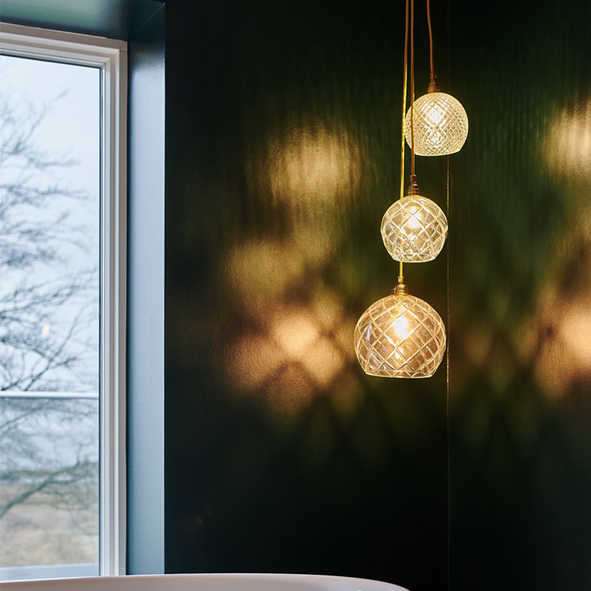 Product Code: 8ELA101532 Light source: 1 x E14 25W (max) | Not Incl. Materials: Crystal, Metal Dimensions: Ø 155 mm x H 150mm | 2000mm Fabric Cable Suspension Brand: Ebb & Flow Being the first EBB & FLOW design, Rowan continues to be a classic, timeless design that works well in almost any space, thanks to its simple spherical shape and elegant twisted fabric cable. Available in a variety of cut crystal patterns and sizes, with either Gold or Silver cable and metalware. Rated IP20 suitable for indoor use. Designed in Denmark and hand-made in Europe. This product features mouth-blown glass and the exact size, colour and texture of each piece may vary. For trade enquiries, please contact us below. |