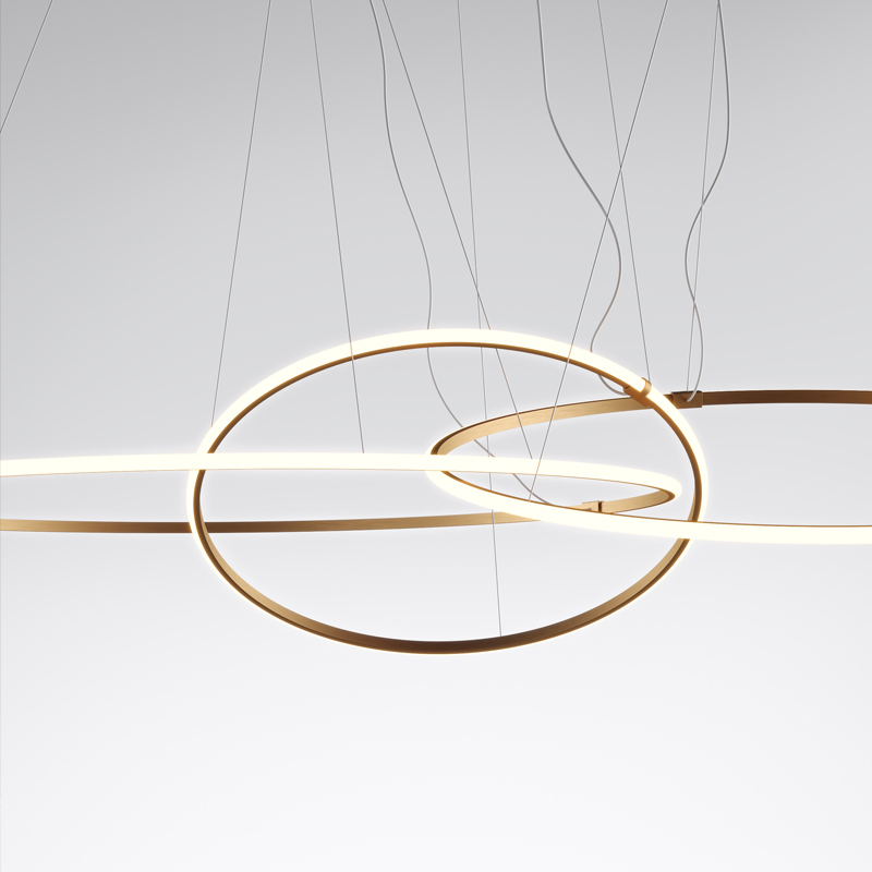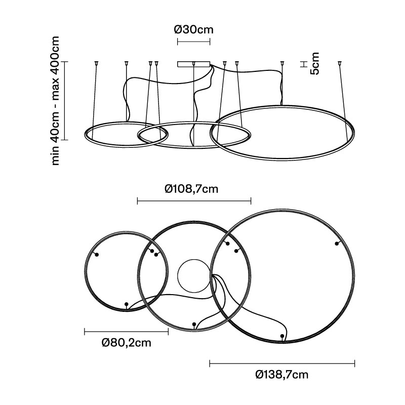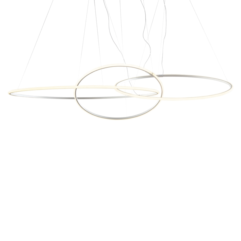Product Code: 6FF45A32 76 Light source: 196W LED (Built-In) | 2700K | 18,495lm Materials: Aluminium, Plastic Dimensions: Ø 802mm + Ø 1087mm + Ø 1387mm | 4000mm Max Hang Height Brand: Fabbian The Olympic Pendant Light features sleek, self-contained rings that appear to float, casting dynamic direct and indirect light. Inspired by the Olympic rings, the aluminum frame integrates high-performance LEDs and comes in multiple diameters for versatile compositions. Available in Bronze or White in 2700K or 3000K (pricing varies). Dimmable with PUSH, 1-10V DALI dimming. Rated IP40 suitable for indoor use. Designed by Lorenzo Truant for Fabbian and made in Italy.