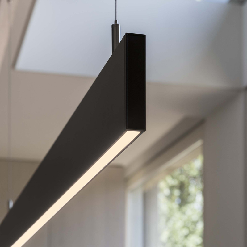 Product Code: (2) 8I241975 + 8I241982 Light source: 64W LED | 3000K | 6000lm (UP + DOWN) Materials: Aluminium Dimensions: L 2400mm x H 95mm x W 20mm | 1500mm Suspension Brand: Ideal Lux The Linus Pendant delivers both direct and indirect light in a sleek, minimalist profile. Its modular design allows it to be used individually or seamlessly connected in continuous lines and corners for tailored architectural solutions. Available in Black or White and supplied in 1.2M lengths with accessories (sold separately). Rated IP20 suitable for indoor use. Dimmable with 1-10V dimming. Designed by Ideal Lux in Italy. *Price shown is for 2 x Linus 1.2m Pendant + 1 x Straight Connector For trade enquiries, please contact us below. |