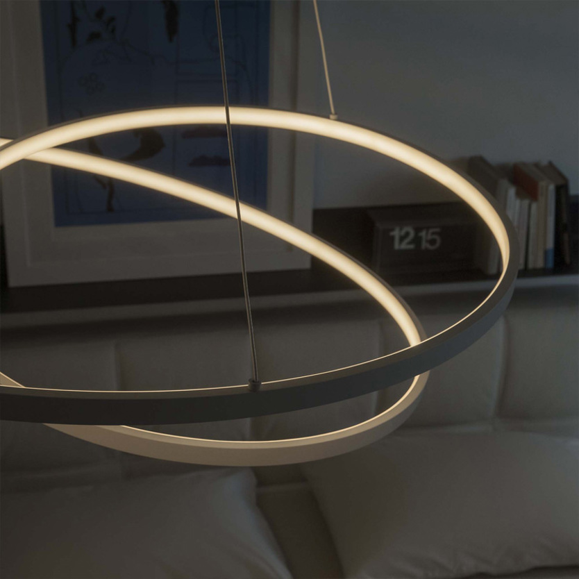 Product Code: 8I253664 Light source: 52W LED | 3000K | 6100lm | CRI>90 Materials: Metal, PVC, Rubber Dimensions: Ø 800mm x H 240mm | 2240 Max Hang Height Brand: Ideal Lux The Oz Pendant by Ideal Lux adds a touch of modern elegance to any space. Featuring a unique double-ring design, this statement piece provides striking, ambient illumination perfect for living rooms, dining areas, or open spaces. Its sleek form and minimalist appeal make it an ideal choice for contemporary interiors. Available in Black, Brass or White, along with other sizes (price varies). Rated IP20 suitable for indoor use. Dimmable options available on request. Designed by Ideal Lux in Italy. For trade enquiries, please contact us below. |