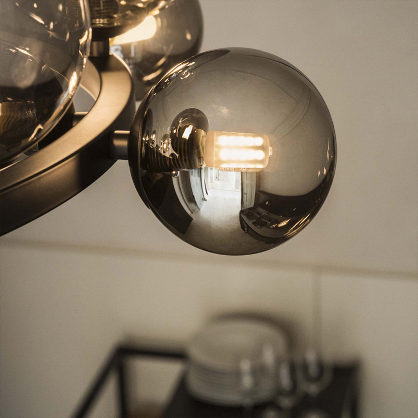 Product Code: 8I271385 Light source: 14 x G9 15W (Max) | Incl. Materials: Metal, Glass Dimensions: Ø 850mm x H 340mm | 2300mm Max Hang Height Brand: Ideal Lux The Ideal Lux Perlage Pendant features a metal frame adorned with clusters of glass spheres, creating a dynamic play of light and reflection. Both sculptural and elegant, it adds a sophisticated statement to dining and living spaces. Available in Black & Smoke Glass, Brass & Amber Glass or Brass & Opal Glass. Rated IP20 suitable for indoor use. Dimmable with dimmable globes (sold separately). Designed by Ideal Lux in Italy. For trade enquiries, please contact us below. RELATED ITEMS
