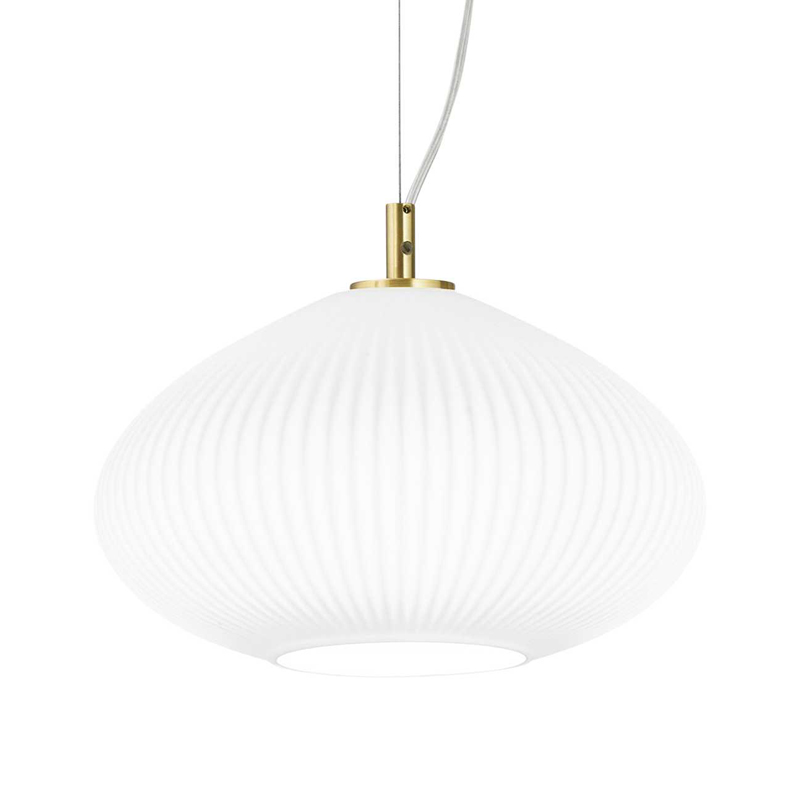 Product Code: 8I285177 Light source: 1 x E27 40W (max) | Not Incl. Materials: Metal, Glass Dimensions: Ø 250mm x H 200mm | 2350mm Max Hang Height Brand: Ideal Lux This collection of pendant lights was inspired by nature, taking its shape from sea urchins. The white opal glass shade features a decorative pleated pattern, providing diffused and pleasant illumination. The classic pairing on white glass and brass also gives the pendant a modern and stylish aesthetic. Also available in other sizes. Rated IP20 suitable for indoor use. Designed in Italy. For trade enquiries, please contact us below. |