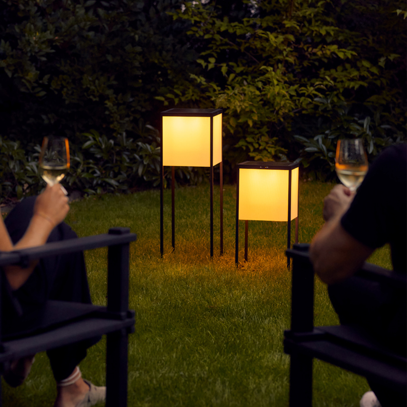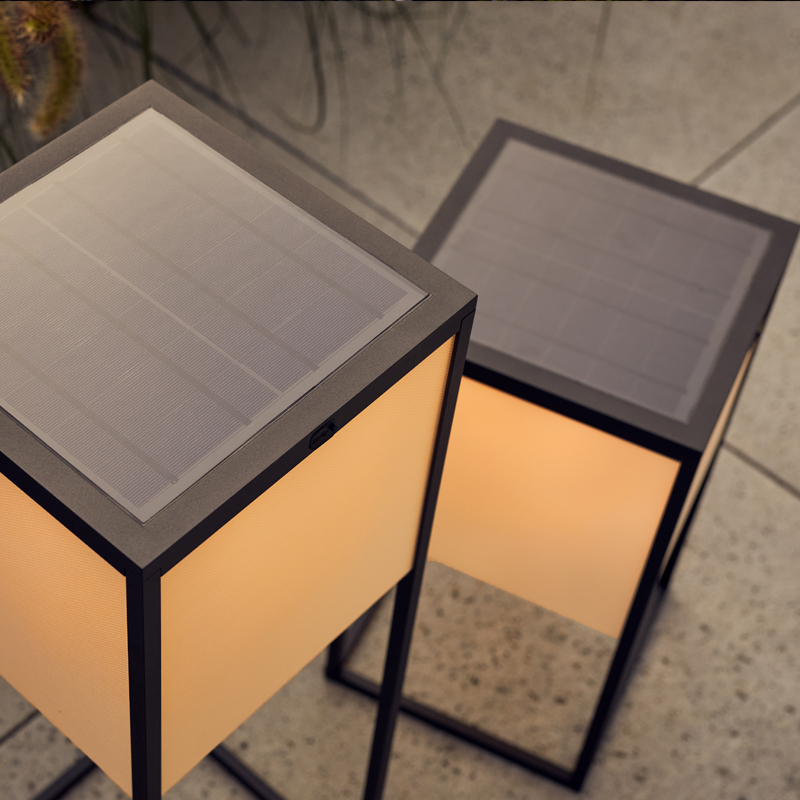 Product Code: 4I93813-BL Light source: 7W LED (Built-In) | 2700K - 1800K | 230lm Materials: Aluminium, Outdoor Fabric Dimensions: H 710mm x W 250mm x D 250mm Brand: IP44.DE This modern, portable design features a built-in solar panel for easy outdoor charging as well as the ability to recharge via USB-C. The translucent fabric is weatherproof and UV resistant and allows for pleasant lighting with no glare. The light source can be dimmed down from warm white 2700K to ultra-cosy 1800K, which is the colour temperature of candles and fire. Available in 2 sizes (price varies). Rated IP65 suitable for outdoor use. Up to 55hrs on lowest dimmable setting. Designed by Klaus Nolting for IP44.DE and made in Germany. This product is solar and requires access to direct sunlight. Possible limited function in shaded areas or winter months. For trade enquiries, please contact us below. |