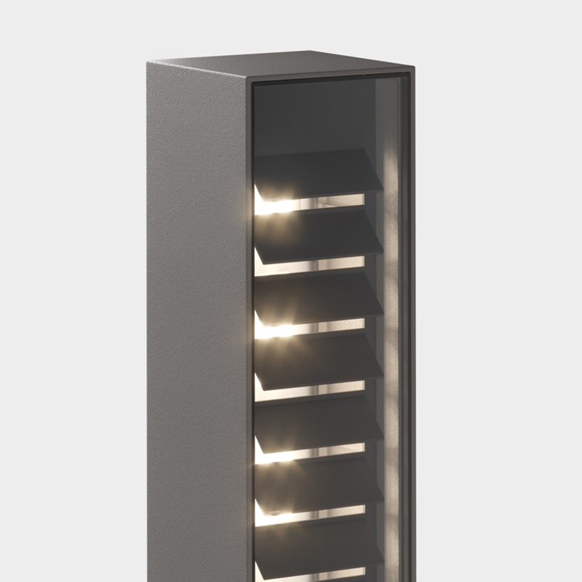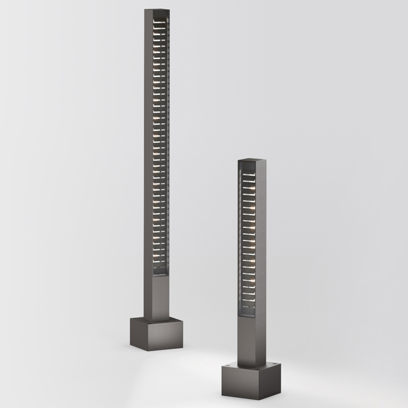 Product Code: 4I92095-27-CB Light source: 9W LED (Built-In) 2700K | 164lm Materials: Aluminium, Glass Dimensions: H 400mm x W 45mm | Base H 60mm x W 90mm Brand: IP44.DE This striking luminaire features a minimalist die-cast Aluminium frame which is home to a series of anti-glare blades that serve as a both a decorative and functional design element. Available in two sizes (price varies), the Lin Bollard light can be ordered in Deep Black, Cool Brown or Anthracite. Rated IP65 suitable for outdoor use. Dimmable with leading/trailing. Designed by IP44.DE and made in Germany. For trade enquiries, please contact us below. |
