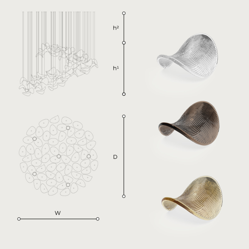 Product Code: 6IT770/D Light source: 6 x 7W LED | 36º | 3000K | CRI93 | 650lm Materials: Glass, Metal Dimensions: Ø 1200mm x H1 800mm | H2 1000mm Brand: ITALAMP The Kaleido Sella brings an aura of elegance and movement, redefining the concept of bespoke lighting by offering an innovative system that combines technology and design to fit perfectly into any environment. It is possible to choose between different types of spotlights, finishes, fixtures and sizes to meet your project needs. Rated IP20 suitable for indoor use. Dimming on request. Designed by ITALAMP Studio and made to order in Italy. For trade enquiries, please contact us below. |