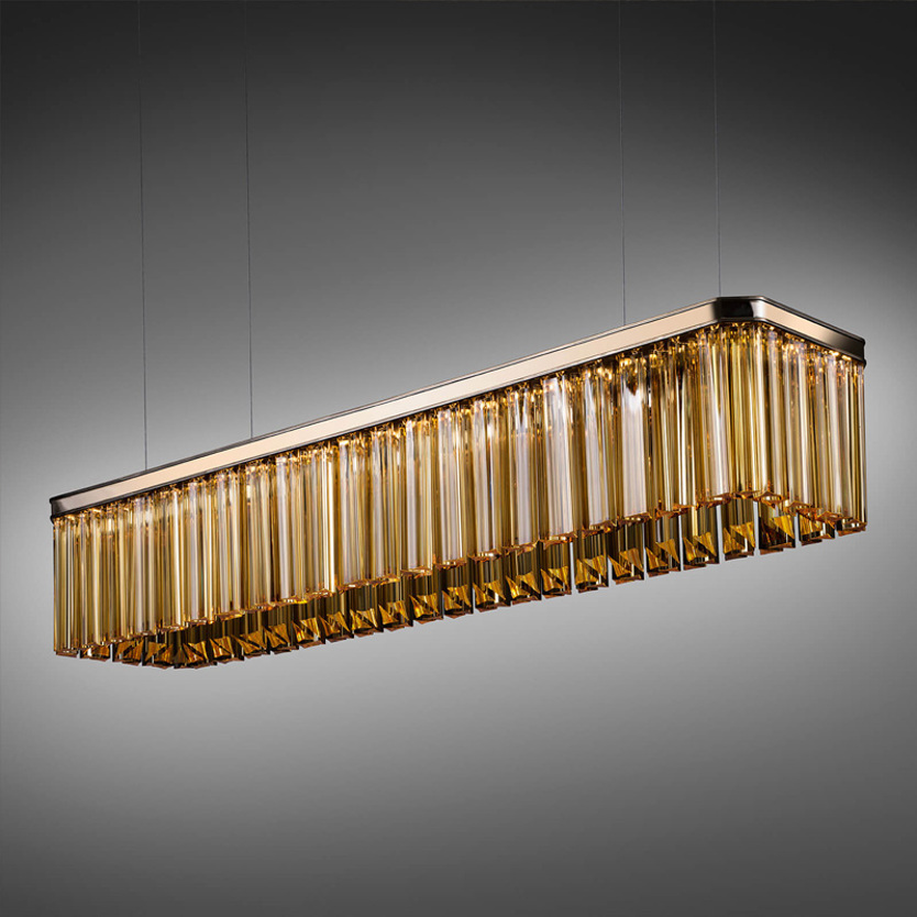 Product Code: 6I04013121002 Light source: Integrated LED 50W (Total) | 3410lm | 3000K | CRI>80 Materials: Metal, Glass Dimensions: L 1200mm x W 260mm x H 210mm | Max Hang Height 1210mm Brand: Italamp The Trihedron Pendant takes it's name from the three sided geometric glass pendants that adorn the light gold frame, resulting in a visually stunning masterpiece of illumination. Available in various sizes and colours, including custom options on request. Standard version is available with clear or amber glass trihedron glasses. Rated IP20 suitable for indoor use. Dimmable on request. Designed by Stefano Traverso and made in Italy. For trade enquiries, please contact us below. |