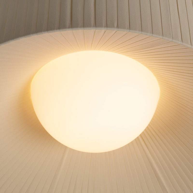 Product Code: 8M6719, 8M3719, 8M2719 Light source: 3 x E27 12W LED (max) | Not Incl. Materials: Glass, Steel, Synthetic Cotton Dimensions: Ø 800mm x H 330mm | Max Hang Height 1400mm Brand: Milan The overlapping ribbons encircle the globe of light, embracing it as if it were on your lap. The texture generated by the intersections of each hand woven ribbon generate a subtle play of light and shadow. Dimmable with compatible globes. Designed by Jordi Jané & made in Spain
