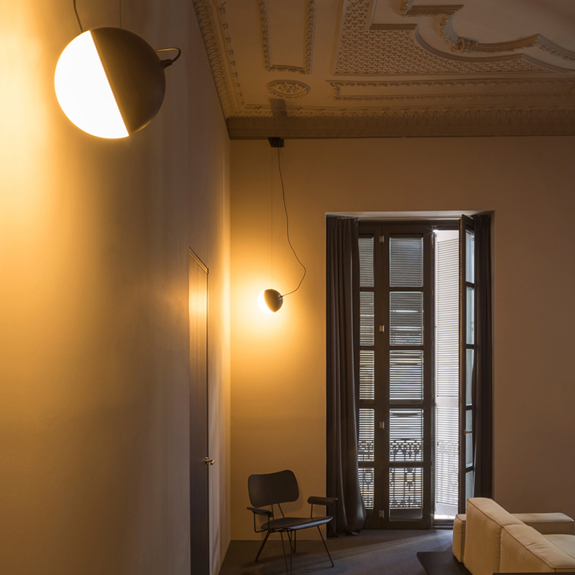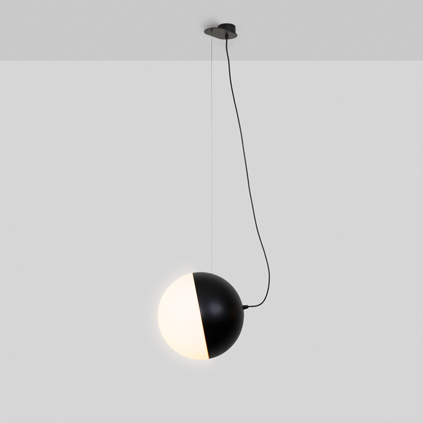 Product Code: 8M6736 + 8M4782 Light source: 1x E27 15W (Max) | Not Incl. Materials: Glass, Steel Dimensions: Ø 250mm x H 1600 (Max Hang Height) Brand: Milan Inspired by lunar phases, the Half collection plays with geometry and contrast through its adjustable, semi-circular diffuser and bold silhouette. Emitting soft, even light, it's ideal as a statement piece in stairwells, entryways or open spaces. Available in Textured Black or Mink Grey, including other sizes (pricing varies). Rated IP20 suitable for indoor use. Dimmable with dimmable globe. Designed by Francesc Rife and made to order in Spain. For trade enquiries, please contact us below. RELATED ITEMS
