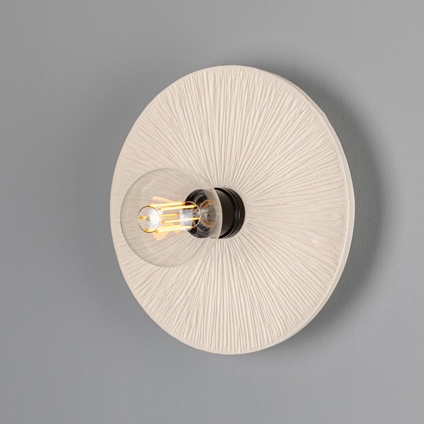 Product Code: 6MMLCMWL045PCMBK Light source: 1 x E27 40W (max) | Not Incl. Materials: Ceramic, Brass Dimensions: Ø 280mm x D 100mm Brand: Mullan Much like ancient bog oak found preserved in peat bogs throughout Ireland, this round ceramic wall light is unique in nature. This ceramic dish wall light has a charming textured surface in a White colour. Other metal finishes and colours available, pictured with Matte Black Rated IP20 suitable for indoor use. Dimmable with compatible globe. Designed by Mullan and made in Ireland. Please note that ceramic lights are handmade and the exact size, colour and texture of each piece may vary. For trade enquiries, please contact us below. |