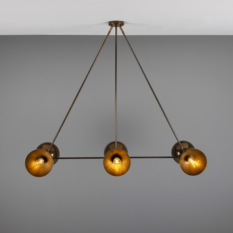 Product Code: 6MMLF359ANTBRS Light source: 6 x E27 40W (Max) | Not Incl. Materials: Brass Dimensions: H 1130mm x L 1346mm x W 276mm Brand: Mullan Make a bold statement with the Eclipse brass dome chandelier that features a modern geometric frame. This chandelier has a distinctive and stylish design with its triangular shape, adding an element of drama to any interior. Available in various metal finishes. Rated IP20 suitable for indoor use. Dimmable with dimmable globes. Designed by Mullan and made in Ireland. For trade enquiries, please contact us below. |