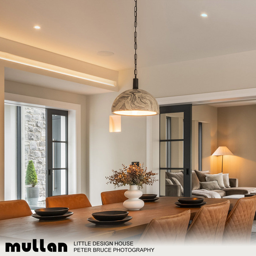 Product Code: 6MMLCMP065PCMBK Light source: 1 x E27 40W (Max) | Not Incl. Materials: Brass, Ceramic Dimensions: Ø 370mm x H 280mm | 2000mm Cable & Chain Brand: Mullan Crafted from ceramic, the Kauri Pendant Light showcases beautiful swirling patterns that mimic polished marble stone, paired with precious metal details. Ideal for dining rooms or kitchen islands, this pendant adds a refined yet organic touch to any setting. Available in various metal finishes, including other clay colours. Rated IP20 suitable for indoor use. Dimmable with dimmable globe. Designed by Mullan and made in Ireland. Please note that ceramic lights are handmade and the exact size, colour and texture of each piece may vary. For trade enquiries, please contact us below. |