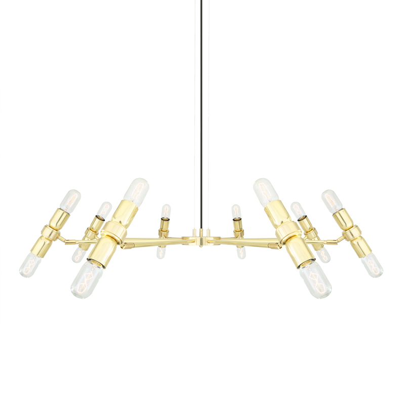 Product Code: 6MMLF245ANTBRS Light source: 16 x E27 60W (Max) | Not Incl. Materials: Brass Dimensions: Ø 1040mm x H 70mm | 1000mm Cable Suspension Brand: Mullan The Kendu chandelier is a modern brass chandelier with eight spokes radiating from a cylindrical centre. At the end of each brass spoke is an adjustable double lamp holder that can be positioned in a number of ways depending on the desired look. Available in various metal finishes. Longer chain lengths on request (pricing varies). Rated IP20 suitable for indoor use. Dimmable with dimmable globes. Designed by Mullan and made in Ireland. For trade enquiries, please contact us below. |