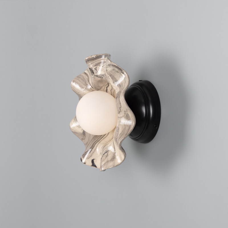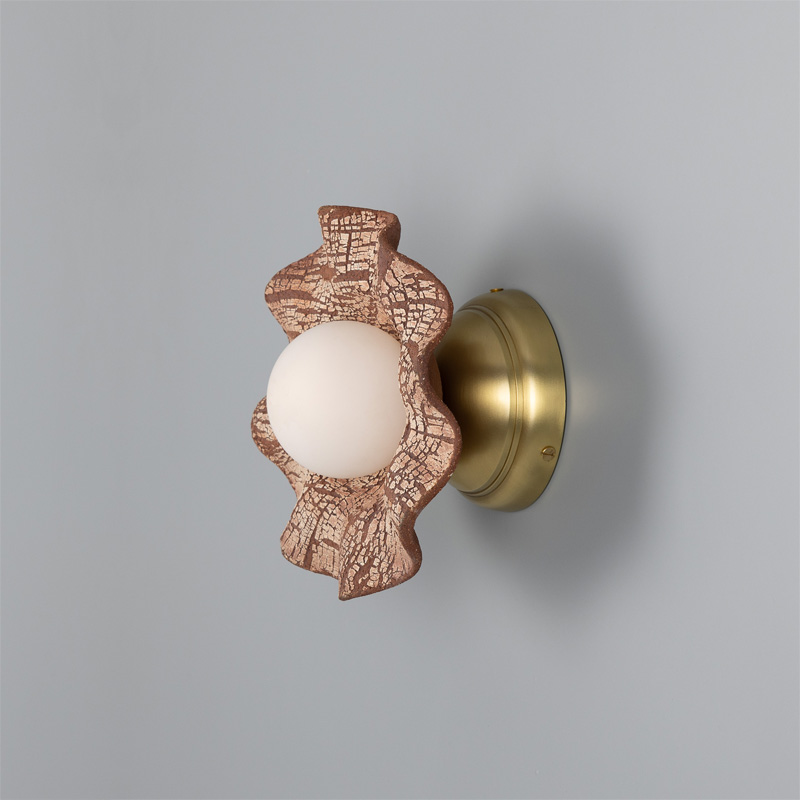 Product Code: 6MMLCMWL033SATBRS Light source: 1 x G9 6.5W LED (Max) | Not Incl. Materials: Brass, Ceramic, Glass Dimensions: Ø 210mm x D 90mm Brand: Mullan The Rivale ceramic wall light is a charming addition to interiors with a nature-inspired design that reflects its organic roots. It features a handcrafted, wavy ceramic shade with a glass globe in its centre. Available in various metal finishes and other clay colours, with clear, opal or frosted glass. Rated IP20 suitable for indoor use. Dimmable with dimmable globe. Designed by Mullan and made in Ireland. Please note that ceramic lights are handmade and the exact size, colour and texture of each piece may vary. For trade enquiries, please contact us below.  |