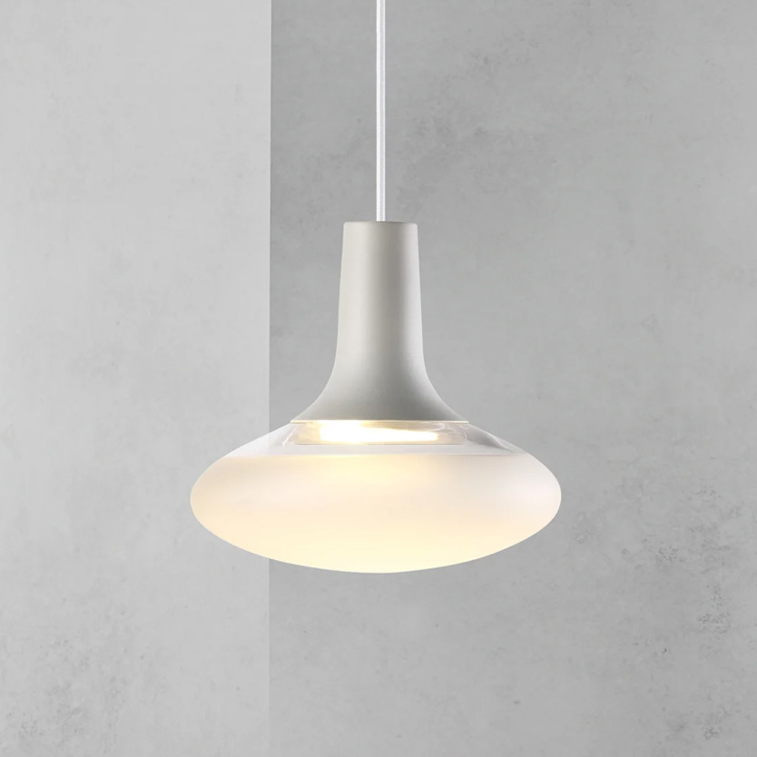 Brand: Nordlux The Dee collection features a semi-frosted glass shade, allowing for glare-free and evenly diffused light distribution. The decorative White metal stem helps to bolden the overall look of the pendant, giving off a contemporary and slightly industrial quality. Perfect for bedsides, above island benches and dining tables. Designed in Denmark. SALE PRICE WHILE STOCKS LAST 1 EX DISPLAY AT LOWER PRICE