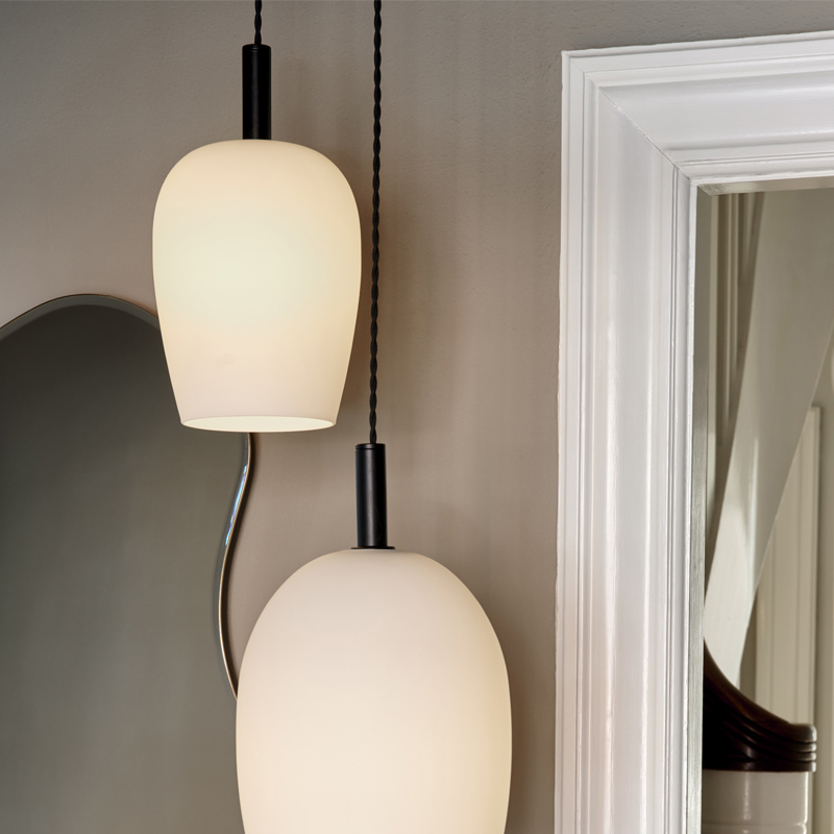 Product Code: 6N2112703001 Light source: 1 x E27 40W (max) | Not Incl. Materials: Metal, Glass Dimensions: Ø 180 mm x H 305mm | 2000mm fabric cable suspension Brand: Nordlux The Uma collection adds a modern and decorative touch to the classic bell shaped pendant light. The mouth blown glass shade has an elegant, oval shape and provides soft, evenly diffused light. Also available in Smoke glass and other sizes (price varies). Dimmable with compatible globe. Designed in Denmark. For trade enquiries, please contact us below. |