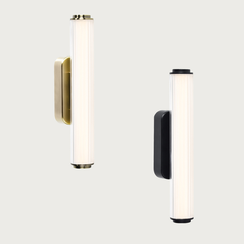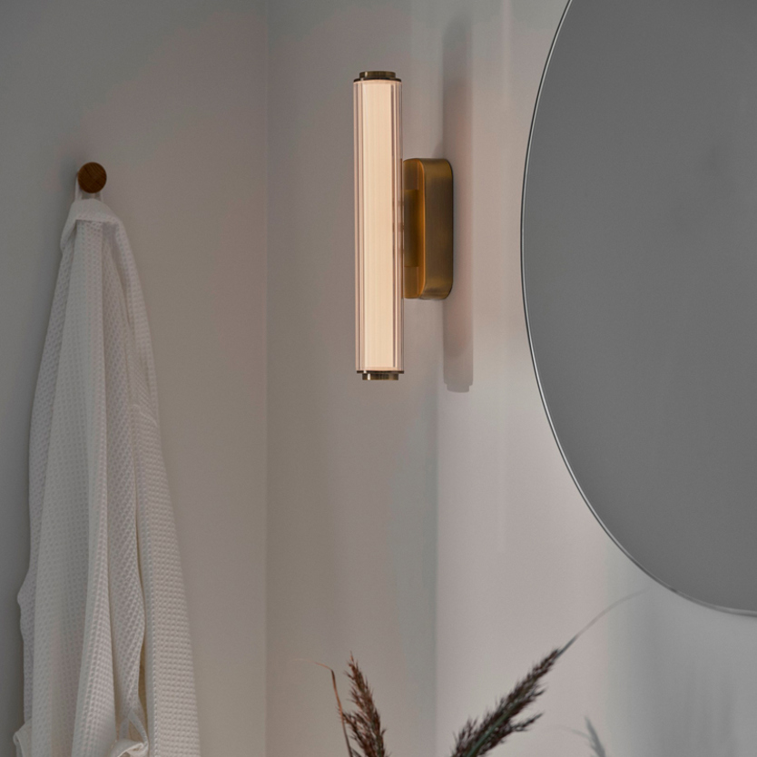 Product Code: 6N2610221035 Light source: 8W LED | 3000K/4000K | 760lm | CRI90 Materials: Plastic, Metal Dimensions: H 320mm x W 55mm x D 100mm Brand: Nordlux The Virelle IP44 Wall Light is perfect for bathrooms, featuring a ribbed diffuser that softens the light and adds subtle texture. Choose between warm white (3000K) or cool white (4000K) during installation, depending on the mood you want to create.