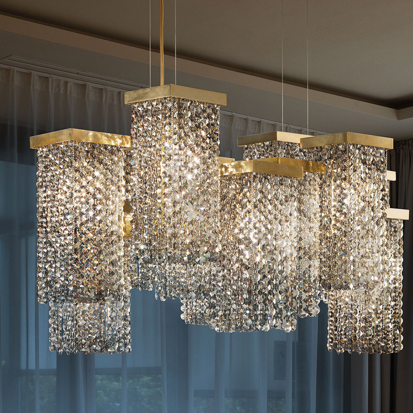 Product Code: 2MSKYLINES12 Light source: 12 x E14 40W Materials: Brass & Crystal/Glass Dimensions: H 480mm x L 830mm. 500mm diameter Brand: Masiero A dramatic contemporary chandelier the Skyline is offered in either glass or Swarovski crystal options, as well as a variety of configurations (prices    vary - price above indicates glass costing). Made & designed in Italy. Globes not included     IP20     For trade enquiries, please contact us below. RELATED ITEMS