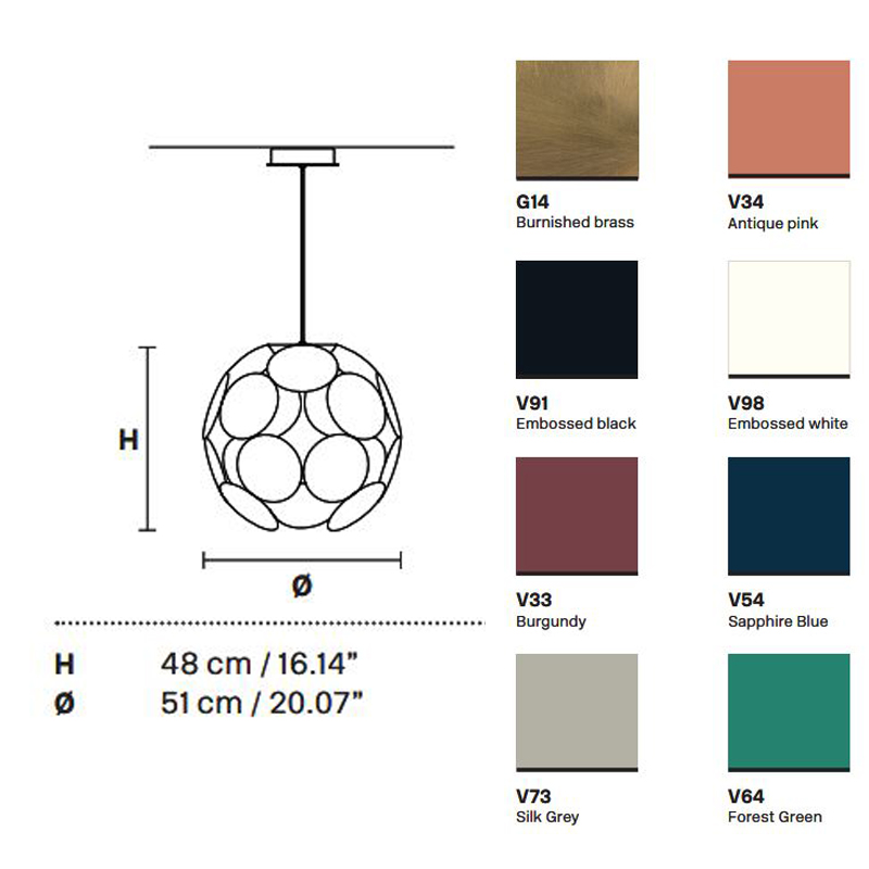 Product Code: 2MTIMEOS150 Light source: LED 10W 3000K (included) Materials: Metal Dimensions: H 480mm. 510 diameter Brand: Masiero These funky metal Pendant lights from Masiero pay homage to the Memphis movement and offer custom colourways in a variety of designs. Available in burnished Brass, embossed Black, antique Pink, forest Green, silk Grey, sapphire Blue and Burgundy (prices vary). Made & designed in Italy. 1-10V + PUSH dimming IP20     For trade enquiries, please contact us below. RELATED ITEMS