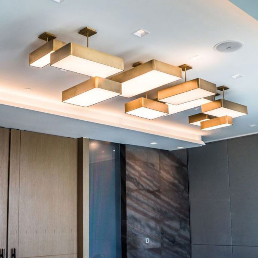 These stunning plated metal geometric pendants are available in four sizes (prices vary) and fixed with a frosted opal diffuser then finished with hairline bronze detail in natural or champagne. Also available in two standard clusters with four or seven pendants (prices vary). Designed by Viso Design Studio. Design and made in Canada. ELV Dimming. IP20