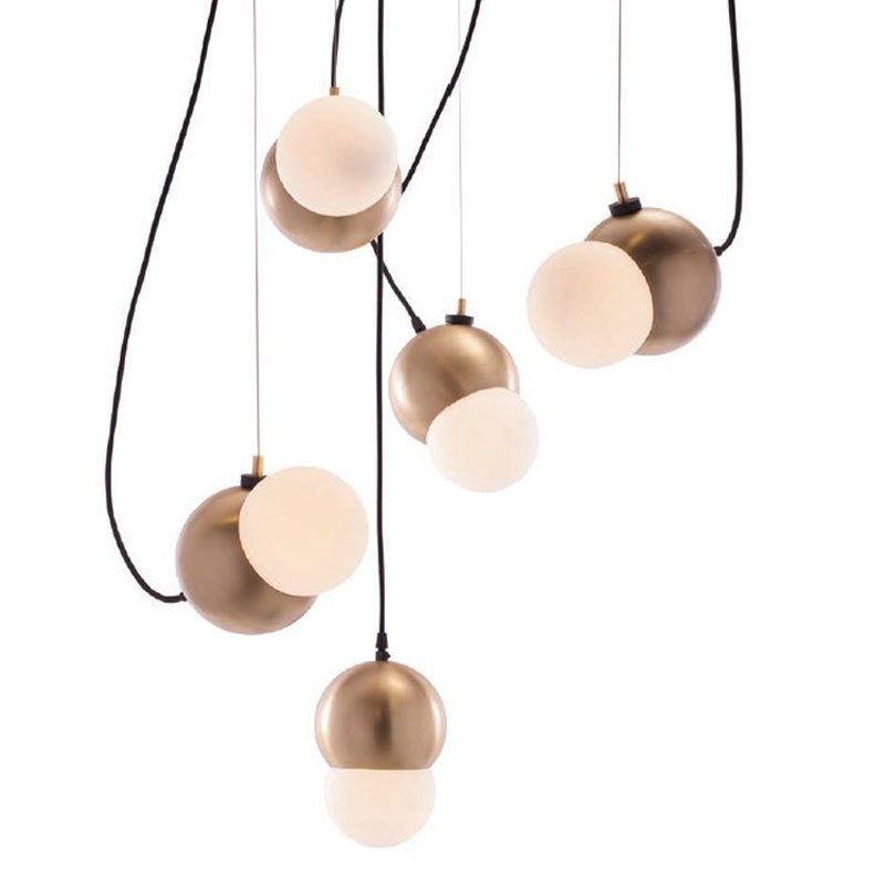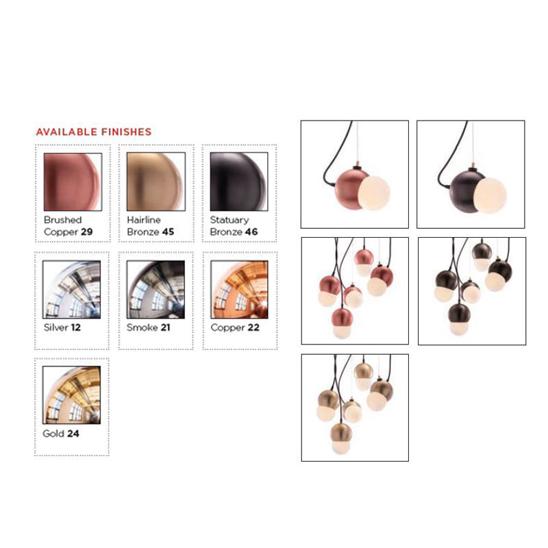 Maggie is a two-tone suspension fixture featuring dynamic magnet aircraft cable that can be used to change the fixture orientation. Available in Silver, Copper, Gold, Smoke, hairline Bronze and dark Bronze finish with frosted white opal glass.