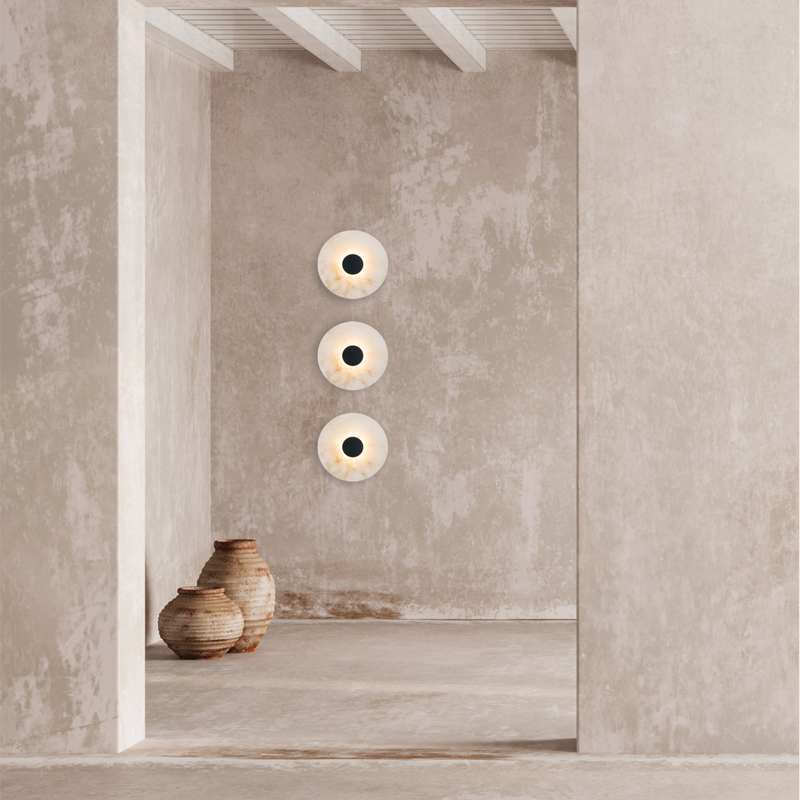 Product Code: 4Z2551 Light source: 5W LED | 3000K | 310lm | CRI80 Materials: Alabaster, Metal Dimensions: Ø 250mm x D 85mm | Base Ø 100mm Brand: Zambelis The Zeus Collection showcases sculptural alabaster forms, each crafted to highlight the stone’s natural veining and warm diffusion. Designed to evoke Mediterranean calm, the Zeus range offers a refined, atmospheric presence suited to modern living, hospitality and architectural spaces. The Zeus Discus wall light suits hallways, vanities and contemporary architectural spaces. Available with matt black or brass metalware. Rated IP20 suitable for indoor use. Dimmable with TRIAC. Includes 3 year warranty. Designed by Zambelis in Greece. For trade enquiries, please contact us below. RELATED ITEMS