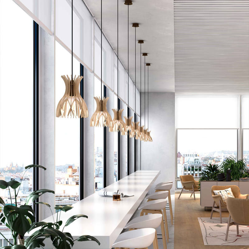 Product Code: 6B25802200114 Light source: 1 x 8W GU10 LED (Max) | Not Incl. Materials: Iron, Aluminum, Beech Dimensions: Ø 200mm x H 255mm | Max Hang Height 2000mm Brand: Bover A light sculpture designed to receive and emit a delicate light, a play of shadows and nuances that enrich any space it is placed in. Formed from thin wooden slats that converge, hand-assembled in Barcelona, forming a small dome that keeps inside the light source. Also available in multi-light clusters (pricing varies). Rated IP20 suitable for indoor use. Dimmable with dimmable globe. Designed by Benedetta Tagliabue for Bover and made to order in Spain. For trade enquiries, please contact us below. RELATED ITEMS