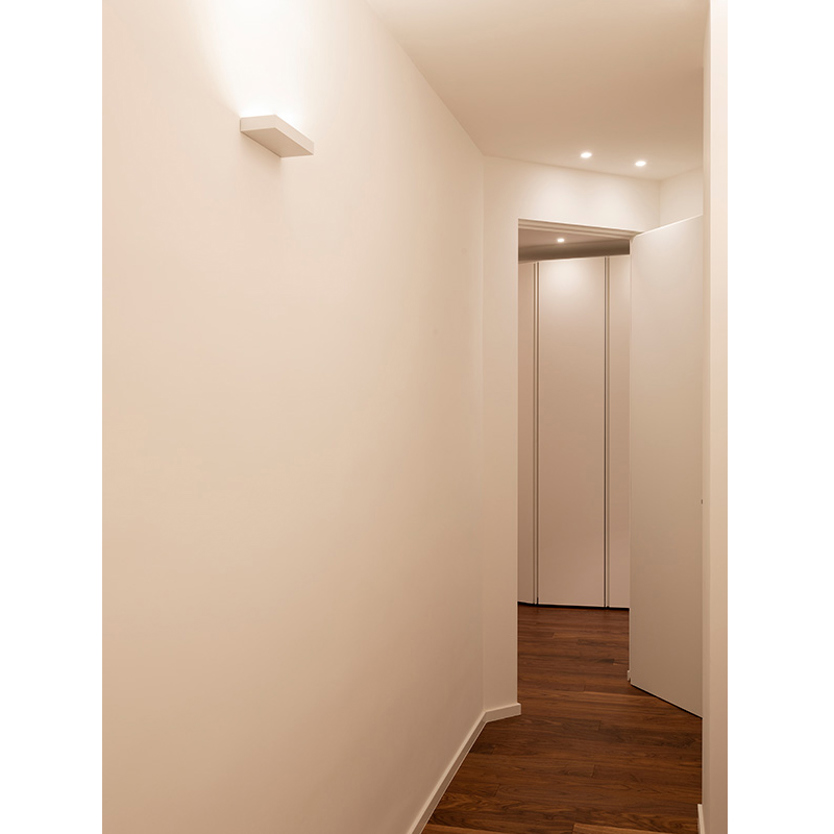 Product Code: 4LEA20105DBN Light source: 13W LED (Built-In) | 2700K, 4000K or 4000K | Diffused Optics Materials: body in aluminium, screen in microprismatic glass Dimensions: H 29mm. W 80mm , D 208mm Brand: Luce & Light Wall mounted for indoor applications. Surface mounted wall. Body in anticorodal aluminium 6060, screen in micro-prismatic glass. Also available in pure Orange, light Ivory, White, capri Blue, Chrome and reseda Green. Designed and made in Italy.