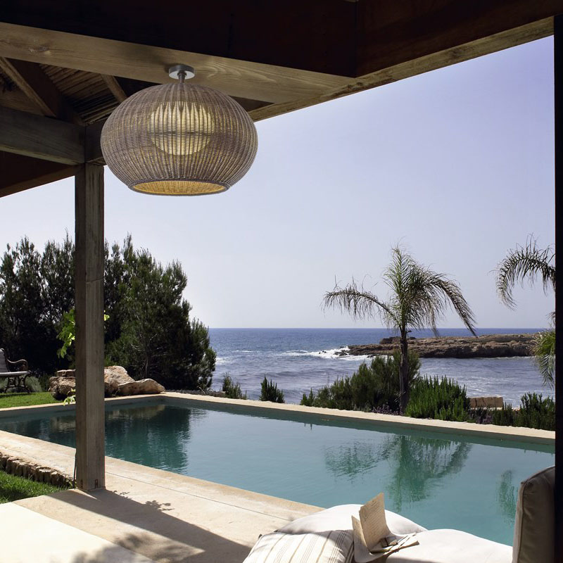 Product Code: 6B33502117129 Light source: 2 x E27 15W (max) Materials: Aluminium, polyethylene, synthetic fiber Dimensions: Ø720mm x H: 550mm Brand: Bover Exterior ceiling light, available in ivory White or Brown shade and as wall or pendant versions (pricing varies). Designed by Alex Fernández Camps &Gonzalo Milà. Designed and made in Barcelona. IP66 rated.