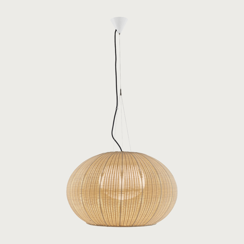 Product Code: 6B3350220201/P801 Light source: 2 x E27 15W (Max) | Not Incl. Materials: Aluminum, Stainless Steel, Polyethylene, Synthetic Fiber Dimensions: Ø 720mm x H 460mm | 1080mm Max Hang Height Brand: Bover The Garotas are part of a diverse collection of outdoor lamps that create unique environments and contain a common concept, the shade in the form of a sea urchin. The shades are hand woven with a recyclable and non-toxic synthetic polyethylene fiber, while the light source is protected by a UV resistant polyethylene globe. Rated IP66 suitable for outdoor use. Dimmable with dimmable globes. Designed by Alex Fernández Camps & Gonzalo Milà for Bover and made in Barcelona.