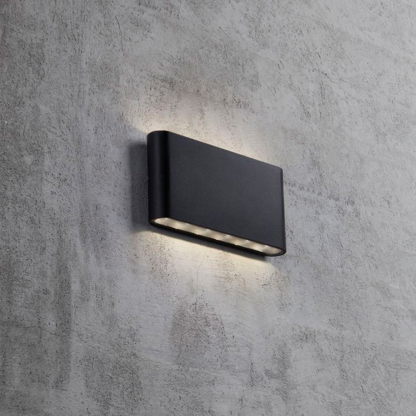 Product Code: 6N84181003 Light source: 2 x LED 3W (fixed) | 3000K | 570lm Materials: Metal, Glass Dimensions: H 90mm x W 175mm x D 30mm Brand: Nordlux Exterior wall light also available in white. Rated IP54. 5 year LED warranty. Designed and made in Denmark. For trade enquiries, please contact us below. RELATED ITEMS