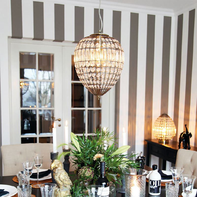 Product Code: 4B4200370-6512 Light source: 1 x 60W E27 (max) Materials: Metal & glass Dimensions: H 415mm x 300mm diameter. Chord length 1200mm Brand: By Rydens This collection of lamps feature antique brass details and prismatic glass drops that create a dazzling display of light and shadow when illuminated. Perfect as a statement piece for entry foyers and bedrooms. Rated IP20 suitable for indoor use. Designed in Sweden. SALE PRICE WHILE STOCKS LAST