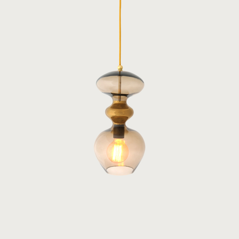 A blend of mouth-blown glass and metal finishes in a variety of colours.