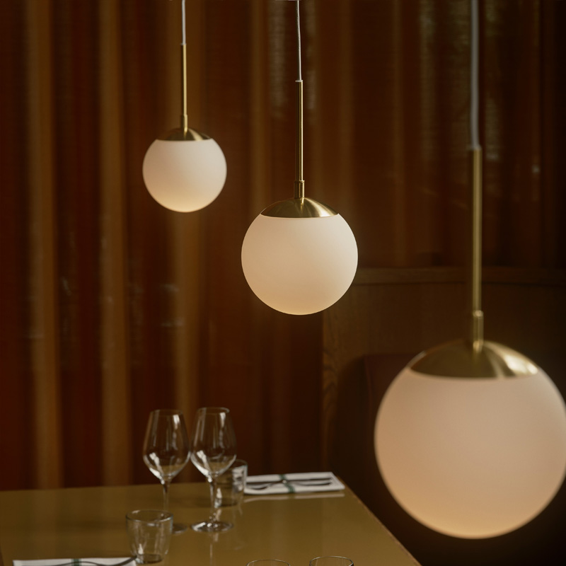 Product Code: 6N2010553035 Light source: 1 x E14 15W (Max) | Not Incl. Materials: Metal, Glass Dimensions: Ø 150mm x H 150mm | 2000mm Suspension Cable Brand: Nordlux The Grant series pairs opal-white mouth-blown glass with a sleek brass frame, balancing simplicity and elegance in a timeless design. Each handcrafted glass dome is unique, adding a decorative touch and warm glow to any space. Available in 3 different sizes (price varies). Rated IP20 suitable for indoor use. Dimmable with dimmable globe. Designed by Nordlux Denmark. For trade enquiries, please contact us below. RELATED ITEMS