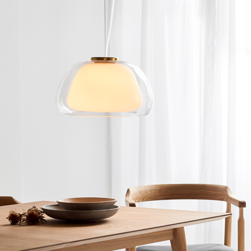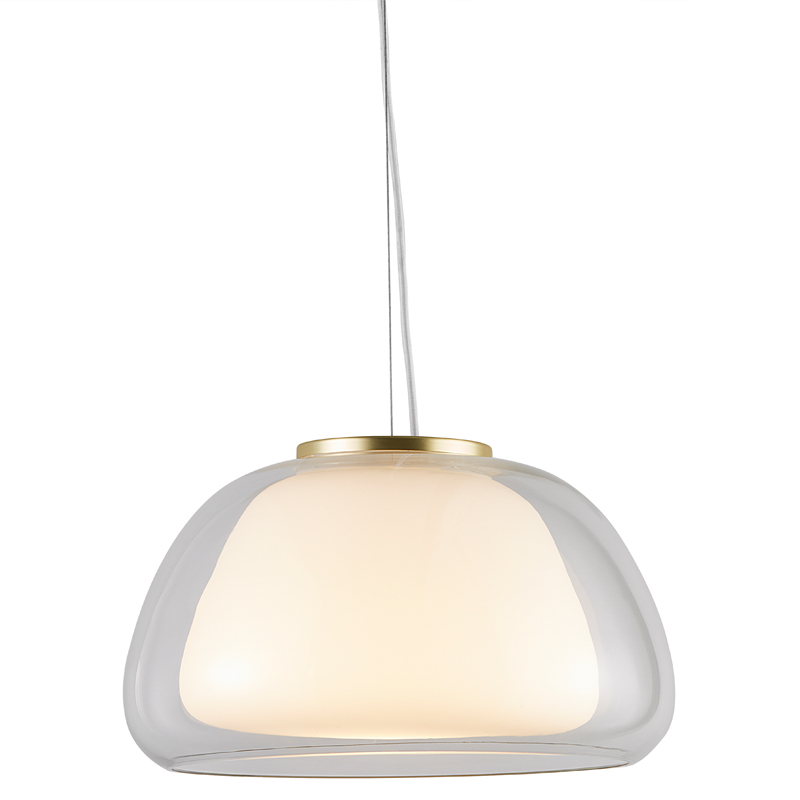 All the unnecessary is removed in the Jelly pendant in favor of the simple shape and inviting expression the glass provides. Jelly consists of two layers of glass with the inner shade in white opal glass and the outer shade in clear glass, which gives the light a soft and warm glow. A small detail is the gracious brass top, which adds an exclusive and stylish expression to the lamp. Designed in Denmark. IP20 | Class II | 240V Ceiling Canopy: Ø 125mm x H 25mm For trade enquiries, please contact us below. RELATED ITEMS