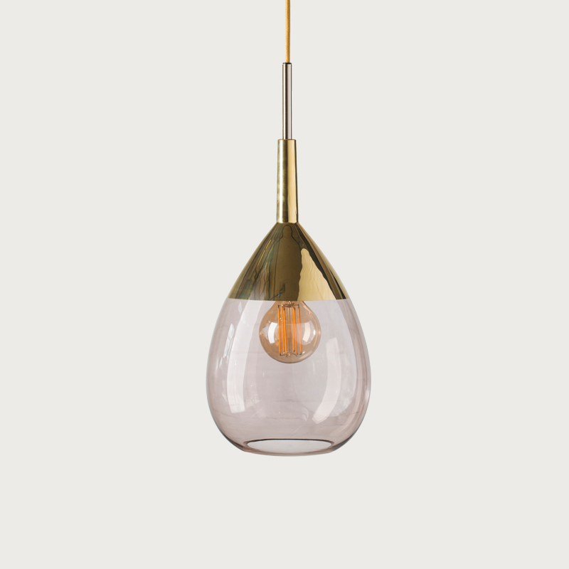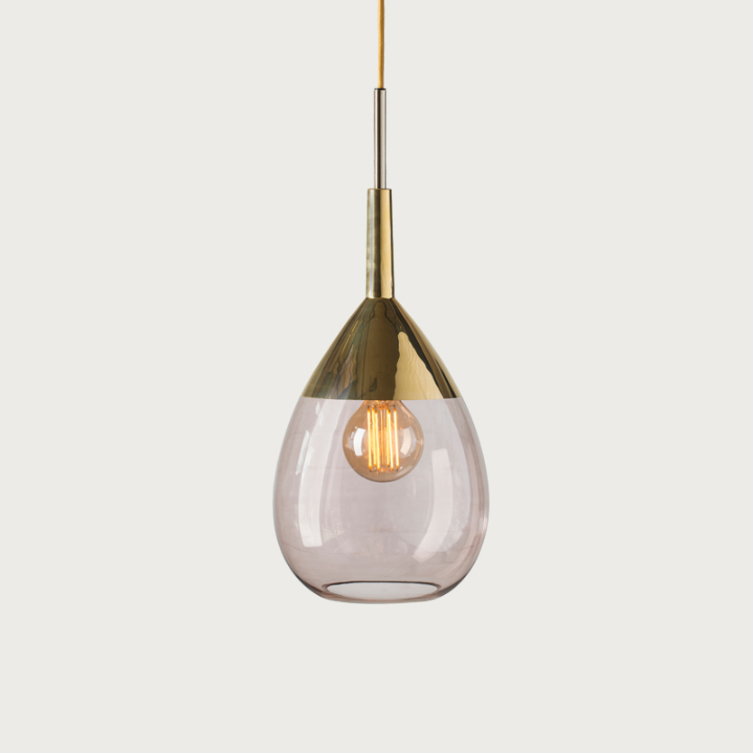 A blend of mouth-blown glass and metal finishes in a variety of colours.