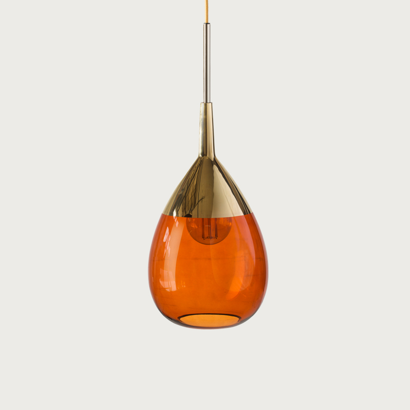 A blend of mouth-blown glass and metal finishes in a variety of colours.