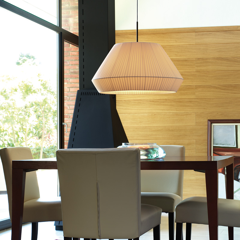 Product Code: 6B4119956/P502C Light source: 1 x E27 15W LED (Max) | Not Incl. Materials: Iron, PBC, Ribbon Dimensions: Ø 600mm x H 475mm | 1660mm Max Hang Height Brand: Bover The MEI collection of pendant lights are entirely made at Bover, starting with the frame welding right down to the hand-woven ribbon shades. The design intent was to accentuate their width and volume, while still appearing light and airy, with large commercial and hospitality settings in mind. Available with white or cream ribbon. Also available in other sizes. Rated IP20 suitable for indoor use. Dimmable with dimmable globes. Custom colours available on request (pricing varies). Designed by Joana Bover and made in Barcelona. For trade enquiries, please contact us below. RELATED ITEMS