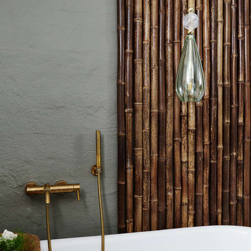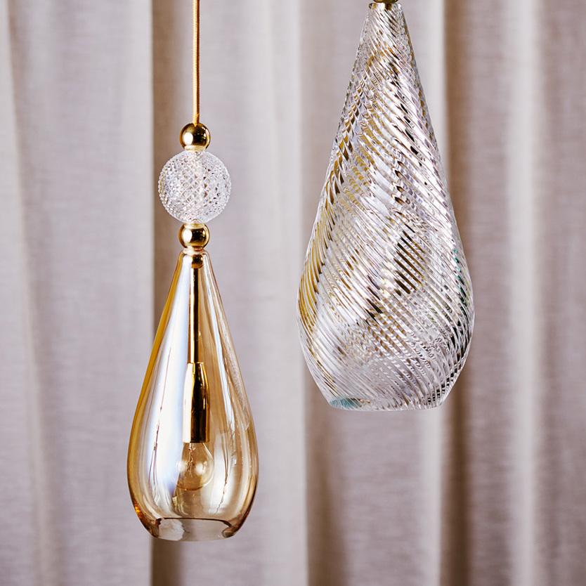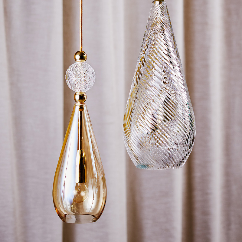 A blend of mouth-blown glass and metal finishes in a variety of colours.