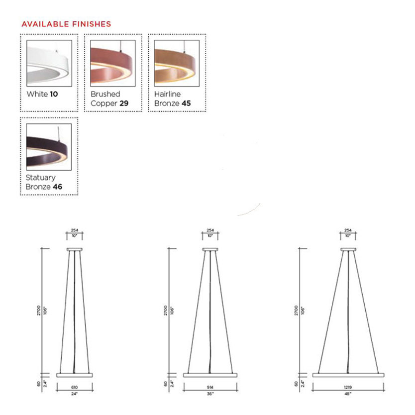 Product Code: 6VSM.07.500.xx Light source: 30W LED 3000K Materials: Steel Dimensions: D 60mm x 610 diameter. Cable length 2700mm Brand: Viso Plated steel pendant with cast glass diffuser available in White, brushed Copper, hairline Bronze & dark Bronze (prices vary). Designed by Filipe Lisboa. Designed and made in Canada. Three sizes available. IP20 For trade enquiries, please contact us below. RELATED ITEMS