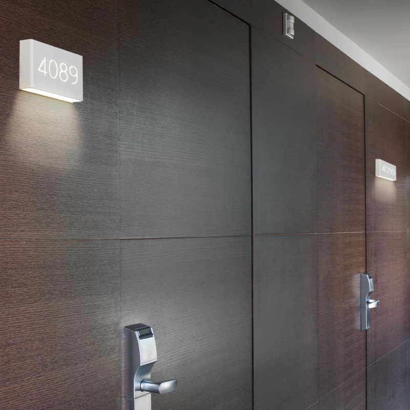 Product Code: 8M3579 Light source: 1 x G9 LED 5W (max) | Not Incl. Materials: Steel, Aluminium Dimensions: H 91mm x W 130mm x D 31mm Brand: Milan The O-tel wall light combines signage with lighting featuring a Matt White lacquered shade that offers relaxed, in-direct illumination. Using later cutting, the fascia of the shade can be tailored to each project's specific requirements, an ideal system for illuminated signage in commercial spaces. Price shown is indicative only.