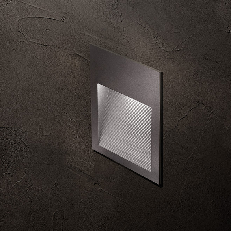 Product Code: 4LPM110015BH Light source: 1 x 5W | 3000k | 170lm | 24V Materials: Aluminium Dimensions: 143mm x D 99mm Step light for outdoor applications. Body is technopolymer and aluminium in either anthracite, cor-ten, white orgrey finishes. Beam options available are 60˚ or asymmetrical 150˚ x 90˚. Power supply 24V or 230V. IP65 Accessories not included Designed and made in Italy