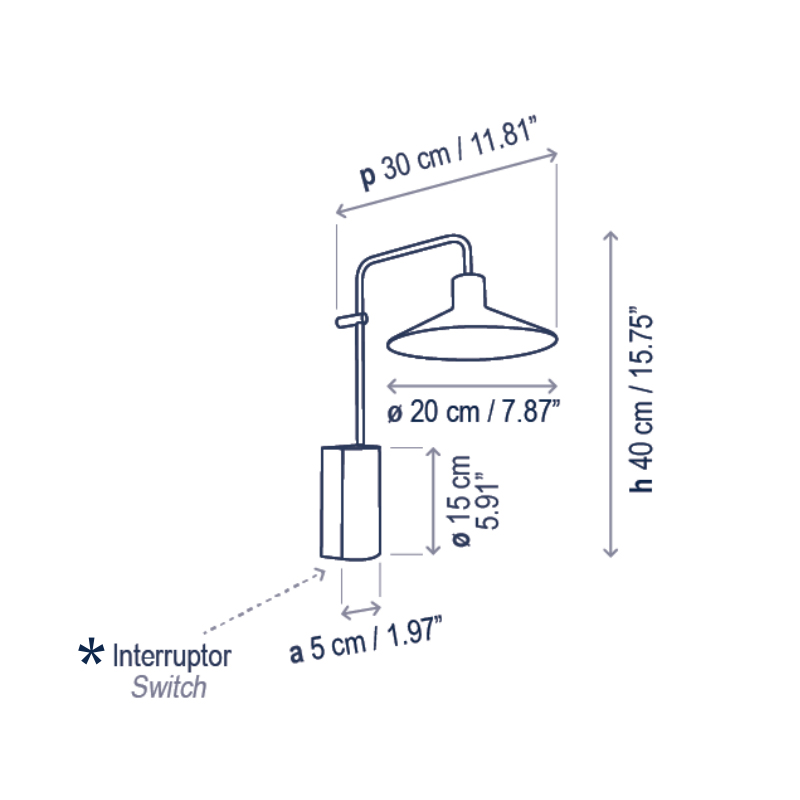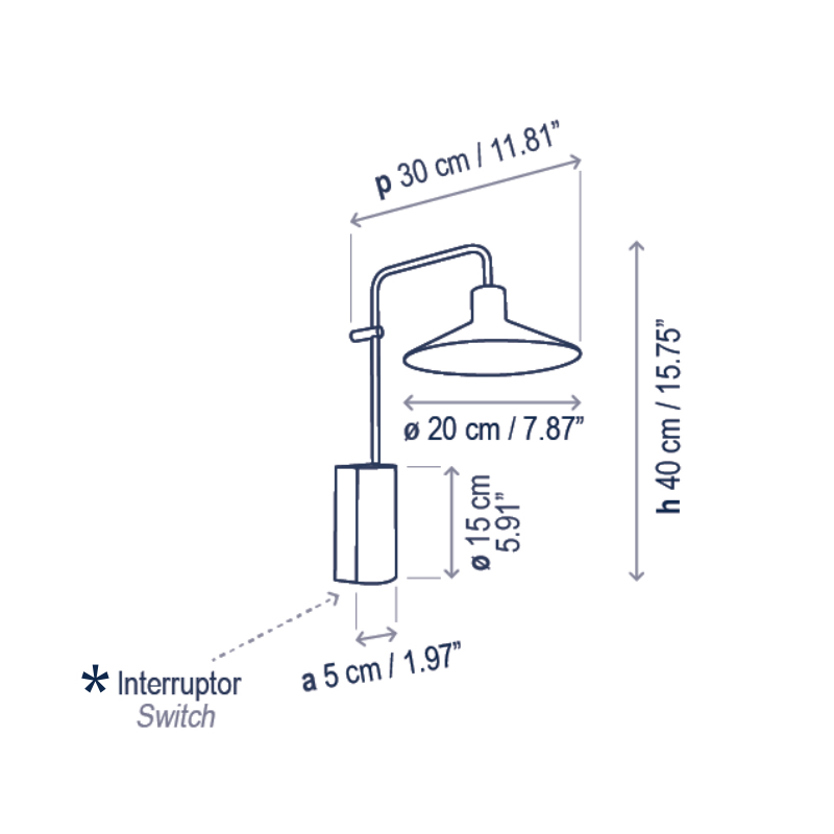 Product Code: 6B21102001147 Light source: 1 x E14 9W LED (Max) | Not Incl. Materials: Aluminium, Brass, Iron Dimensions: H 410mm x W 200mm x D 300mm | Base H 150mm x W 50mm Brand: Bover A sleek conical shade and slim arm give the Platet Wall Light its refined, modern character. Perfect for hallways, living areas, or bedside, it offers warm, focused illumination that blends effortlessly into contemporary interiors. Features a built-in on/off switch, non-dimmable. Rated IP20 for indoor use. Designed by Christophe Mathieu and made to order in Spain. 1 ONLY EX DISPLAY For trade enquiries, please contact us below. |