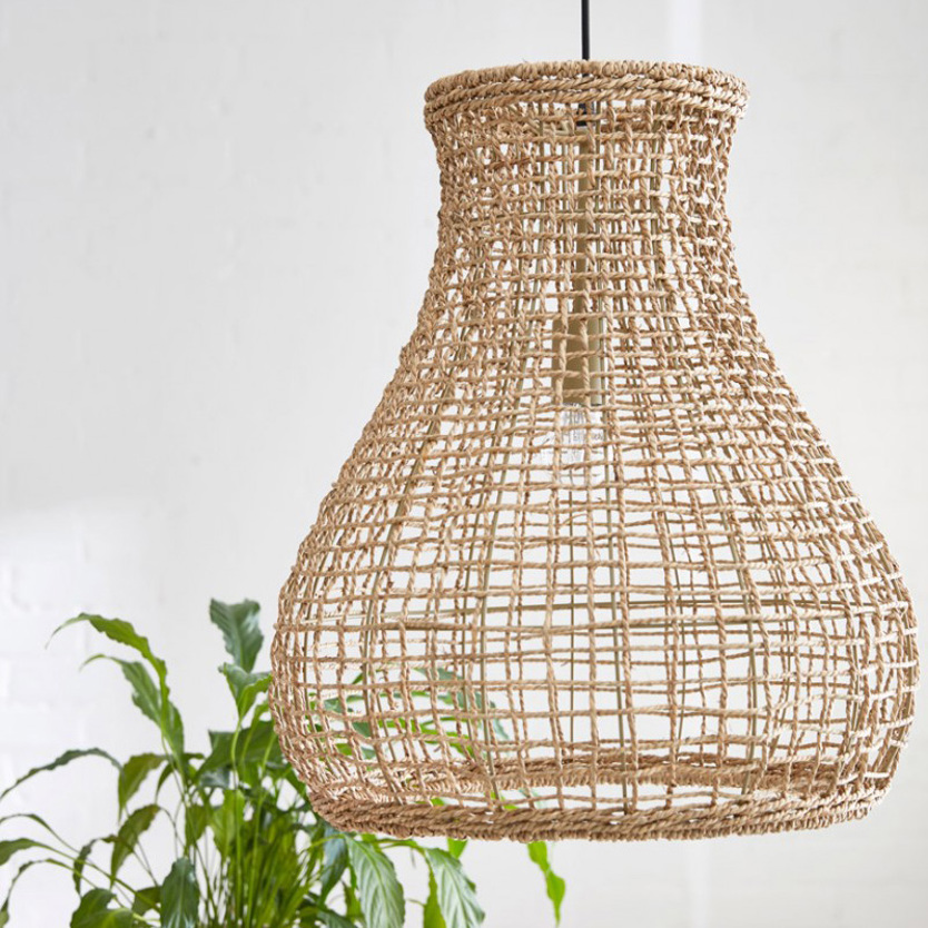 Product Code: 4B4200010-4000 Light source: 1 x E27 60W (Max) | Not Incl. Materials: Metal, Fiber Dimensions: Ø 480mm x H 550mm | 1200mm Cable Suspension BRAND: By Rydens The Seagrass pendant features natural materials shaped by a metal frame. Available in natural or black. Suitable for indoor use only.